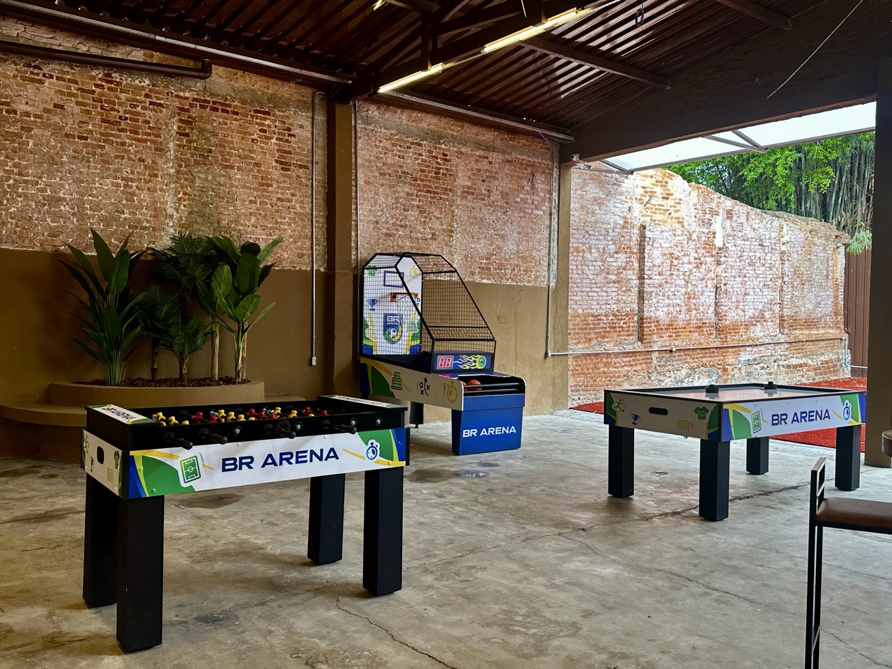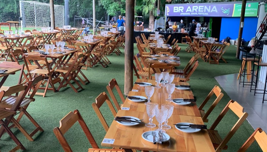Área livre para mesas e brincadeiras com 500 m² (400 m² cobertos + 100 m² ao ar livre)
