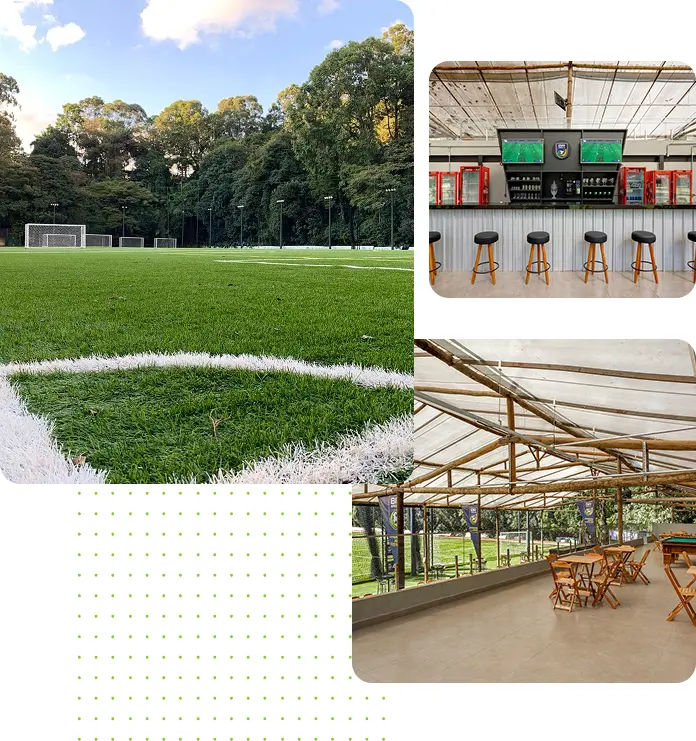 Pra quem conta os dias até o apito inicial. Campos society ao ar livre e quadras de areia cobertas para a bola rolar sempre. Depois, a resenha é garantida no Sports Bar ou na churrasqueira. Faça sua locação — avulsa ou mensal — e viva cada lance.